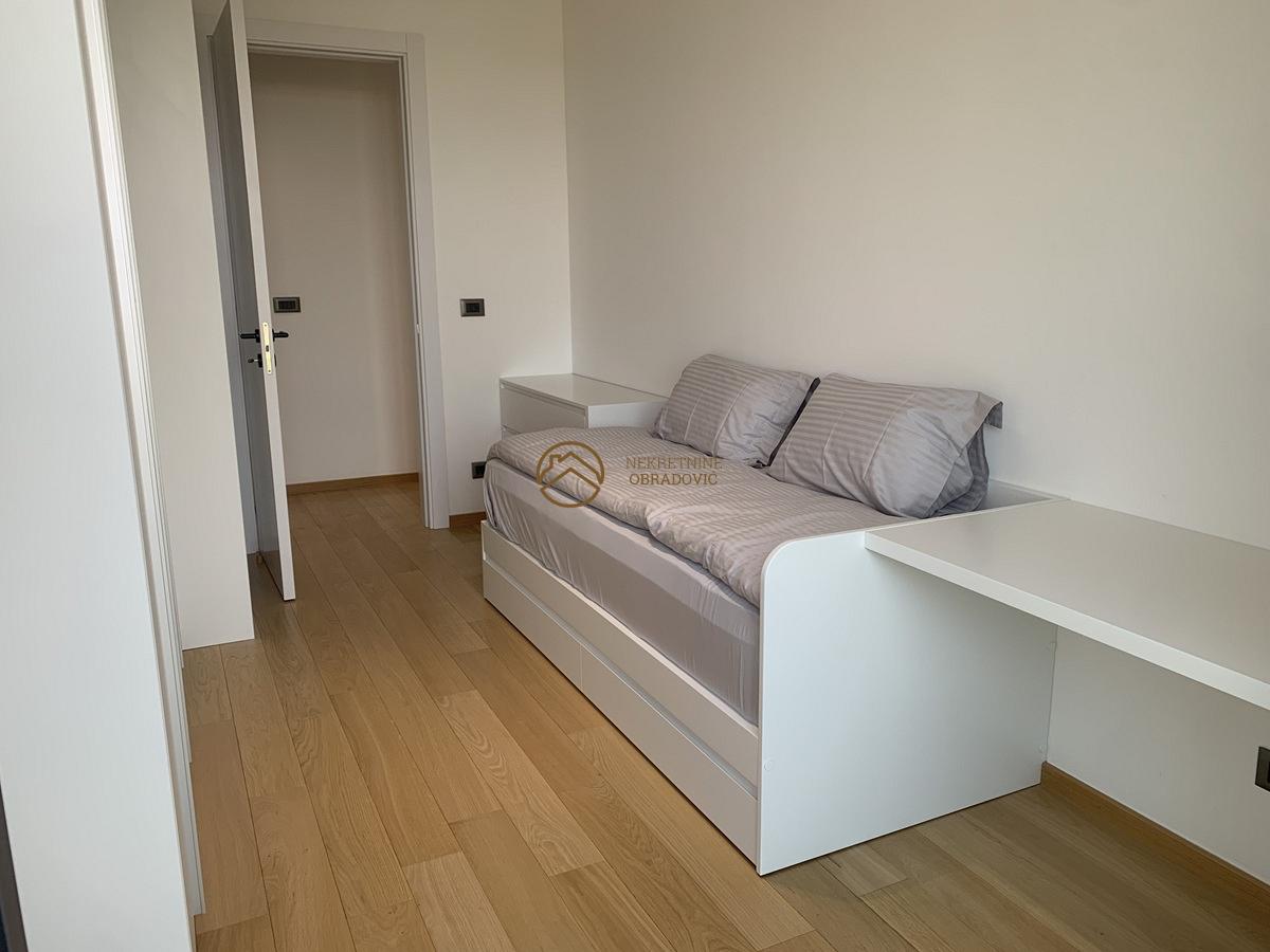 Na prodaju luksuzan, neuseljavan trosoban stan od 74 kvadrata u srcu Beograda, na atraktivnoj lokaciji – Novi Dorcol. Stan se nalazi u modernom stambenom kompleksu koji nudi sve sto je potrebno za udoban i kvalitetan zivot: spa centar, teretanu, restorane, kafice, prodavnice, decije igraonice i brojne druge sadrzaje. U potpunosti je opremljen novim namestajem, raspolaze sa dve spavace sobe, dva moderna kupatila i dva francuska balkona. Moguca je i kupovina garaznog mesta po ceni od 35.000 evra. Idealna prilika za one koji traze luksuz, komfor i prestiznu lokaciju.