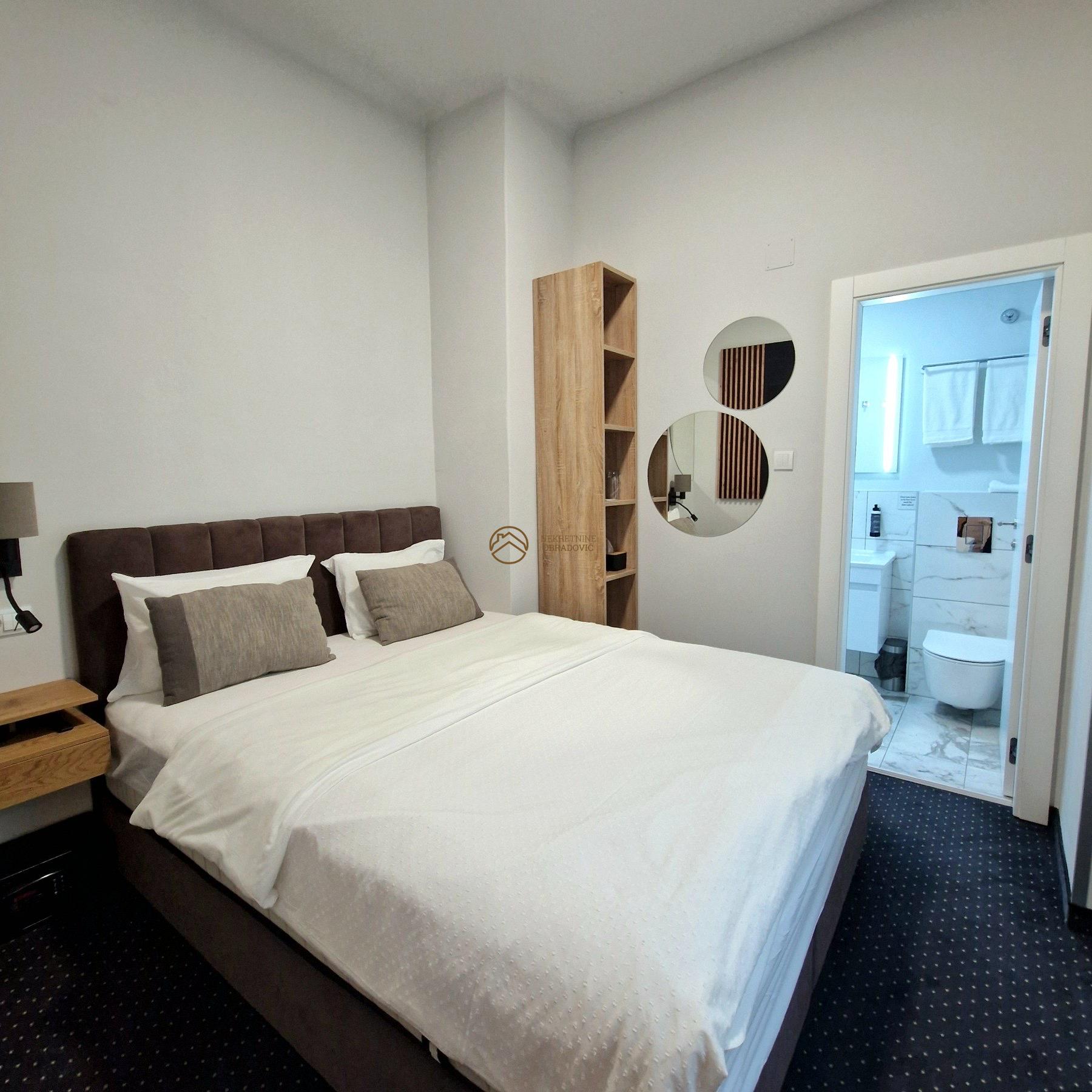 Objekat sadrzi devet klimatizovanih apartmana sa sopstvenim kupatilima(16-28m2),