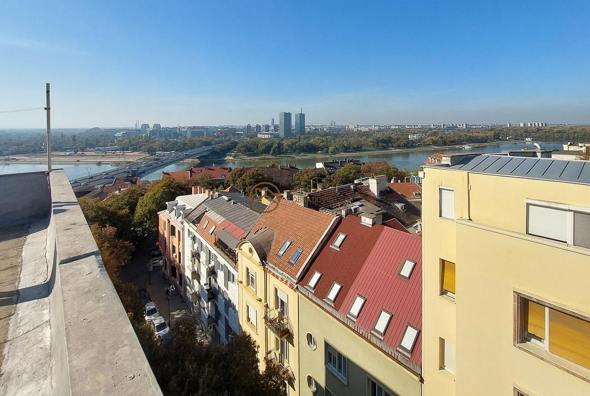 Kosancicev venac, ne treba trositi reci... u svakom slucaju imamo priliku da vam ponudimo vrlo lep stan sa terasama i pogledom na Savu, Beograd na Vodi, Novi Beograd! U pitanju je salonac sa visokim plafonima, skladnog rasporeda prostorija.