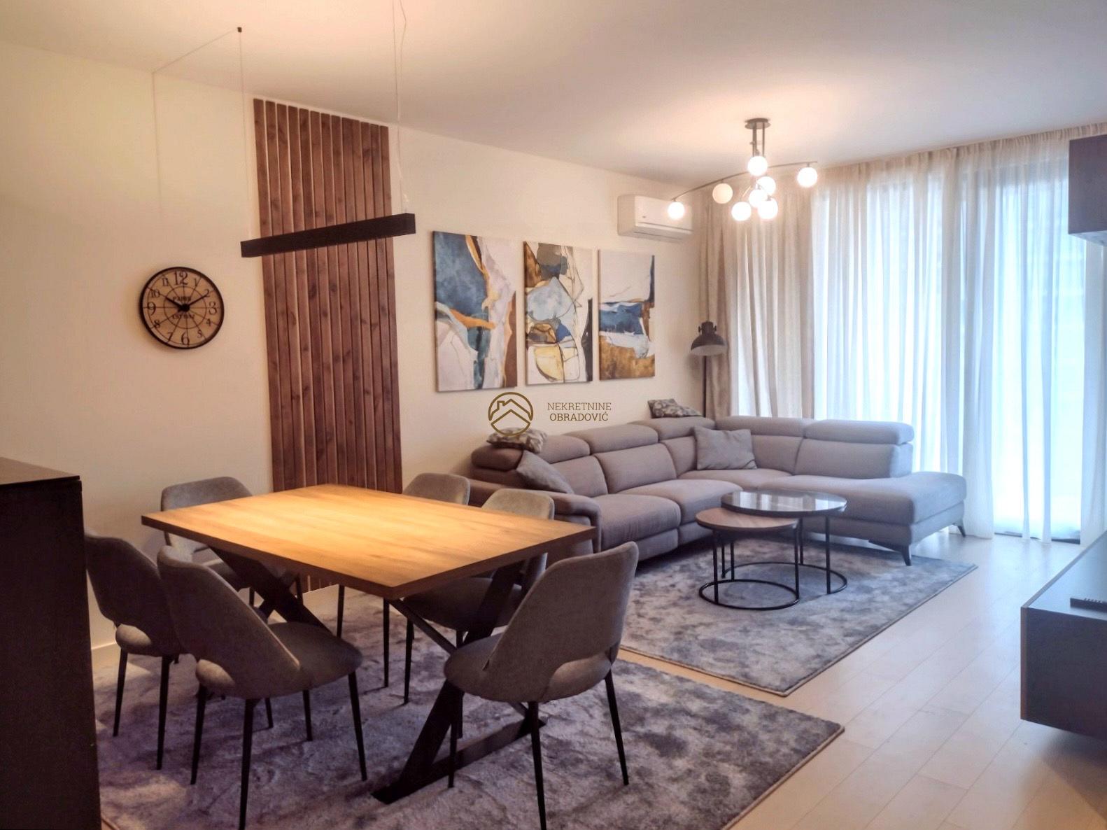 Stan je kompletno opremljen, ukljucujuci kuhinju sa premium belom tehnikom.