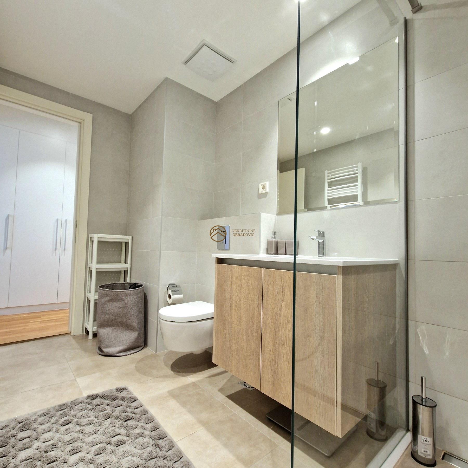 Ulazni prostor, dnevni boravak sa trpezarijom i kuhinjom, spavaca soba, master spavaca soba sa kupatilom, drugo kupatilo, vesernica, degazman, terasa.