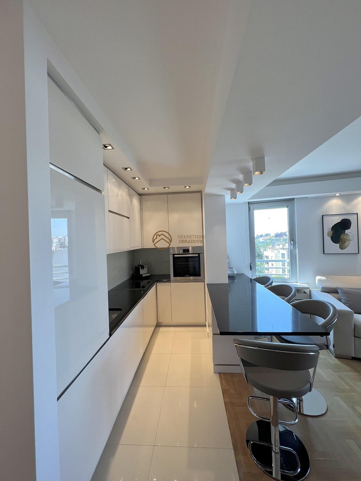 Nalazi u novogradnji iz 2014. godine i stan je u savrseno odrzavanom stanju, koji je minimalno koriscen. Sve u stanu je radjeno po meri i opremljen je najsavremenijim materijalima, tehnikom i aparatima i prodaje se u potpunosti namesten. Nalazi se u veoma kvalitetnoj zgradi, koja poseduje dva lifta, portira 24h i video nadzor. Uknjizen je na 68m2, sastoji se od ulaznog hodnika, kuhinje sa trpezarijom, dnevnog boravka, dve spavace sobe, kupatila, toaleta i terase. Stan je veoma osvetljen, sa odlicnim rasporedom, dvostrano orijentisan i sa pogledom na Hram Svetog Save.