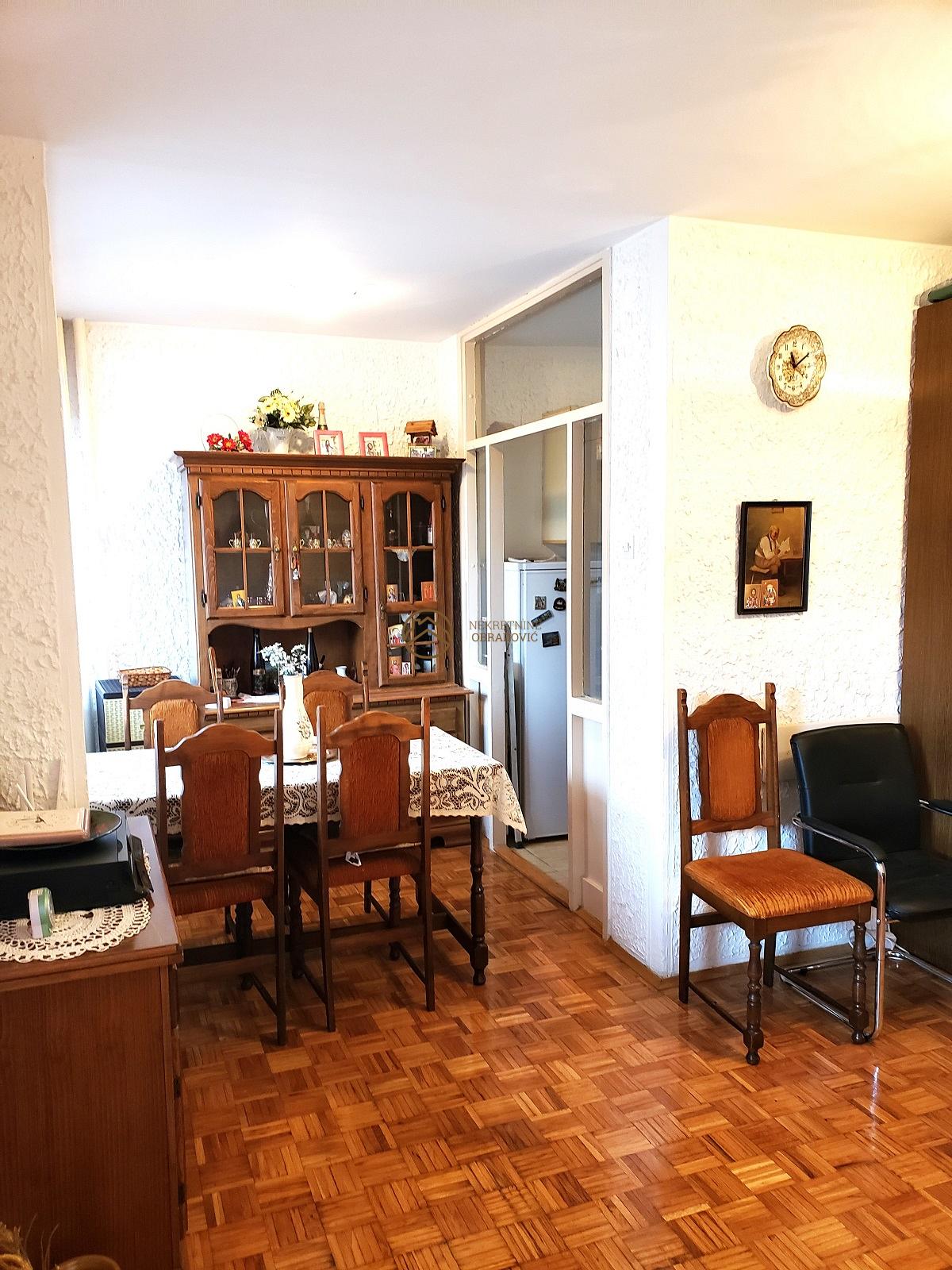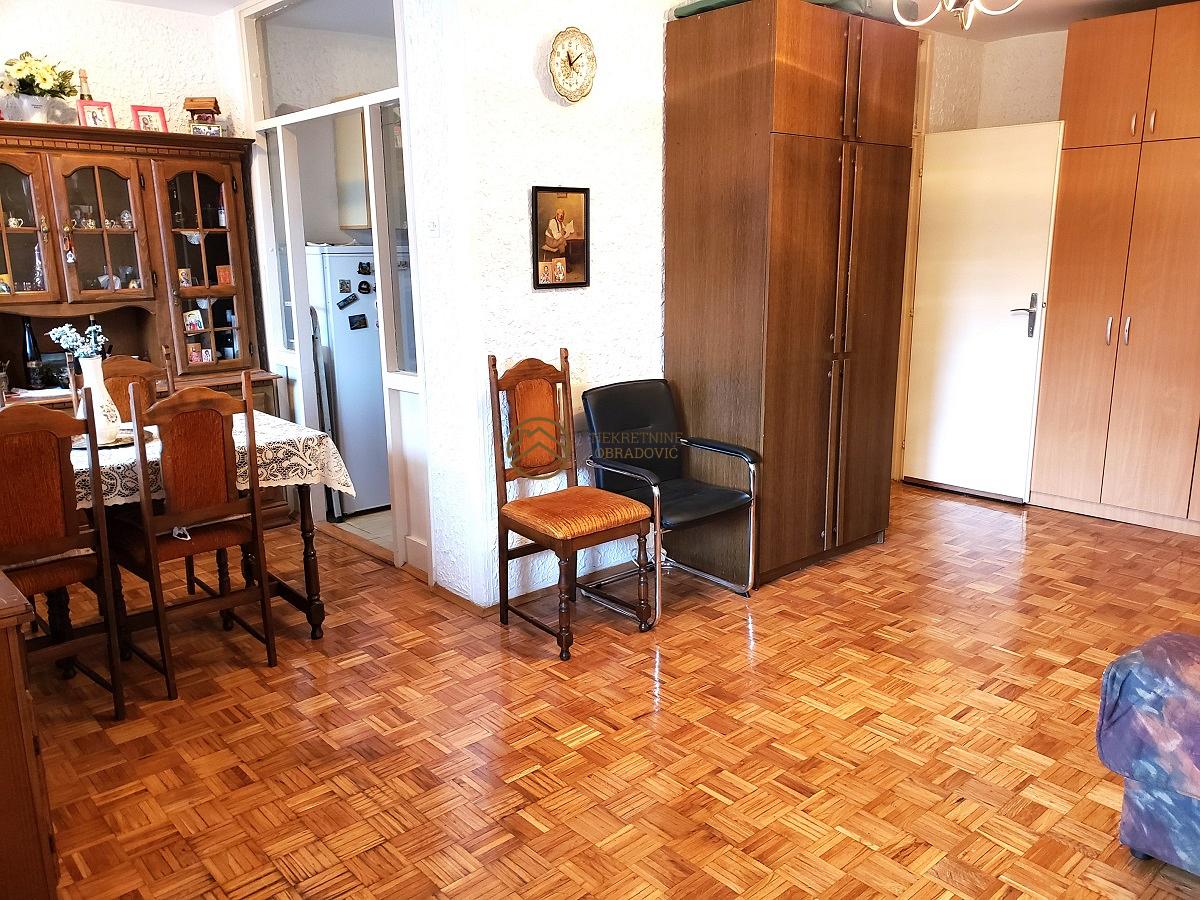 (koja je povezana i sa trpezarijom), kupatilo i manju spavacu sobu (6m2). Stan je