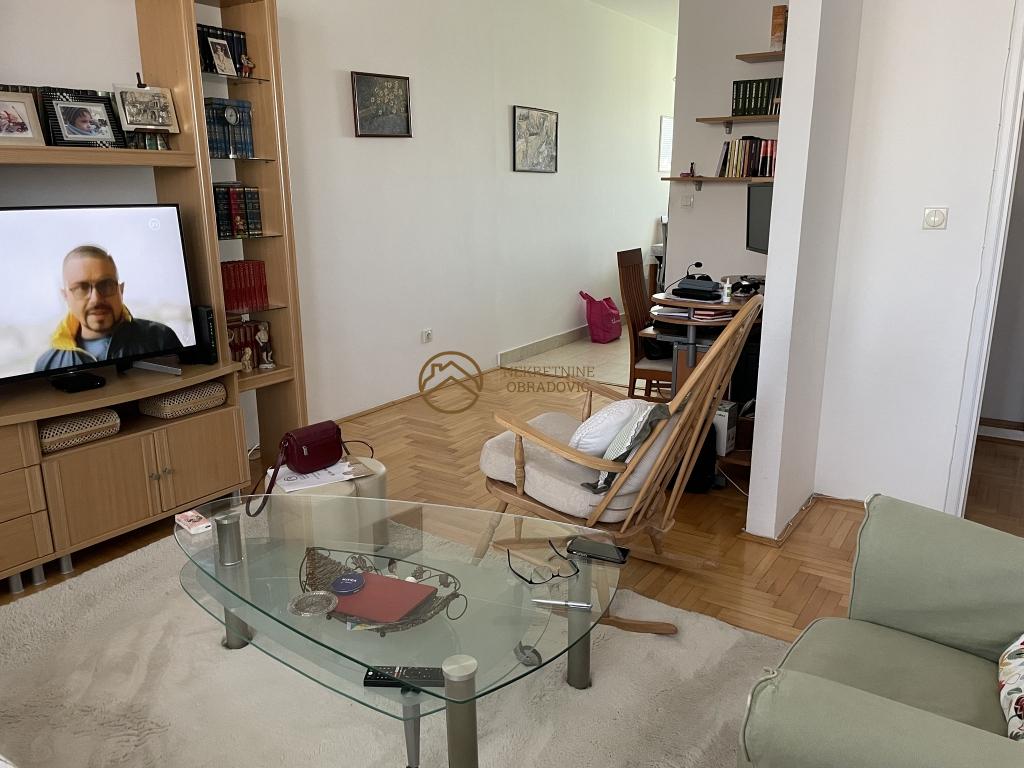 Hodnik, dnevna soba, kuhinja sa trpezarijom, dve spavace sobe, kupatilo i terasa.