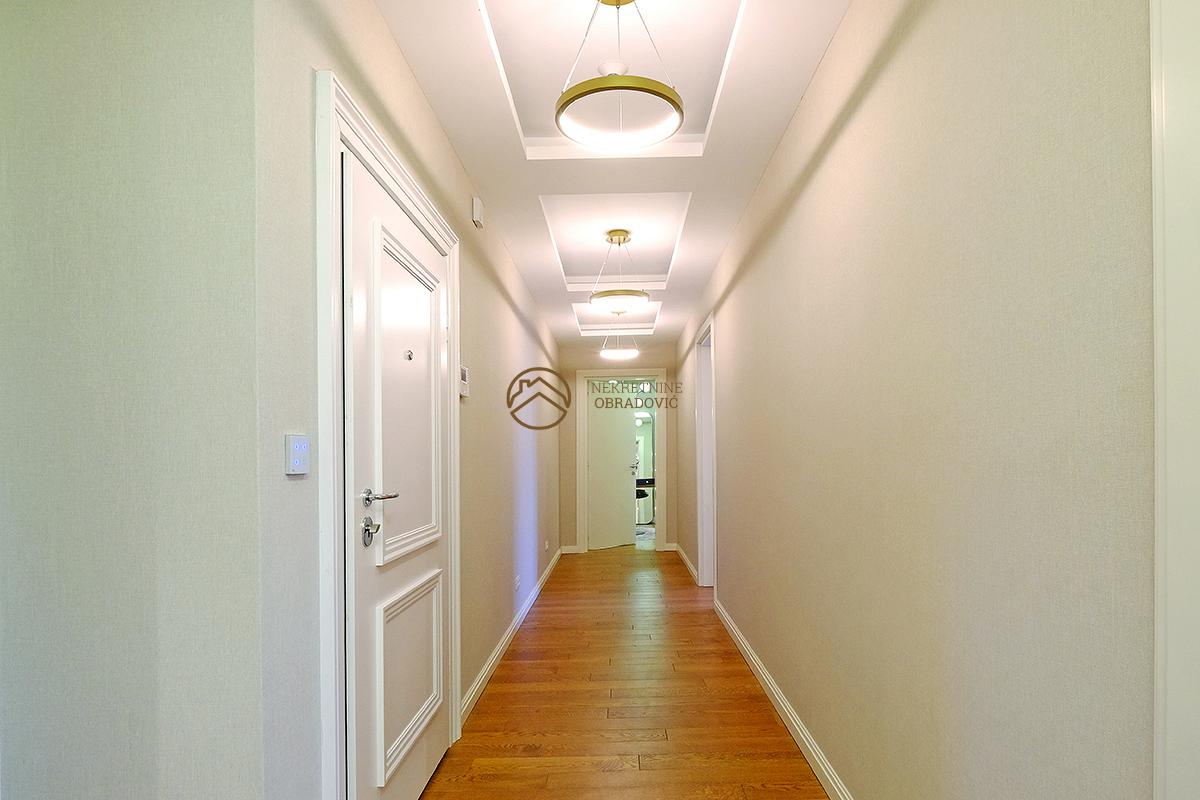 Od prostorija, ova nekretnina poseduje: Prostrano predsoblje koje odvaja dnevni zajednicki prostor (salon, trpezarija, kuhinja, dve prostrane terase, toalet, veseraj) od intimnog spavaceg bloka ( cetiri spavace sobe, svaka sa sopstvenim kupatilom).
