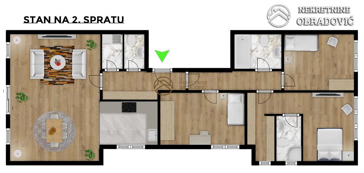 U ponudi je stan na drugom spratu, izvanredno projektovan, prostran, trostrano