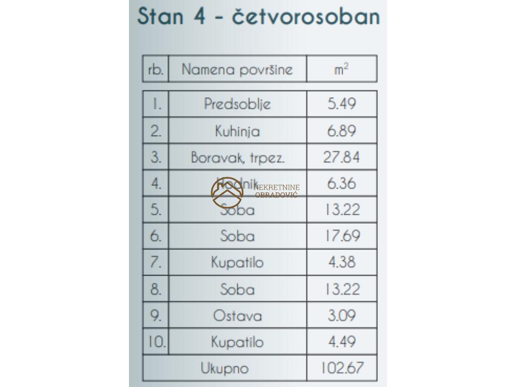 U ponudi je prostran cetvorosoban stan od 102.67m u prizemlju zgrade okruzene zelenim povrsinama.
