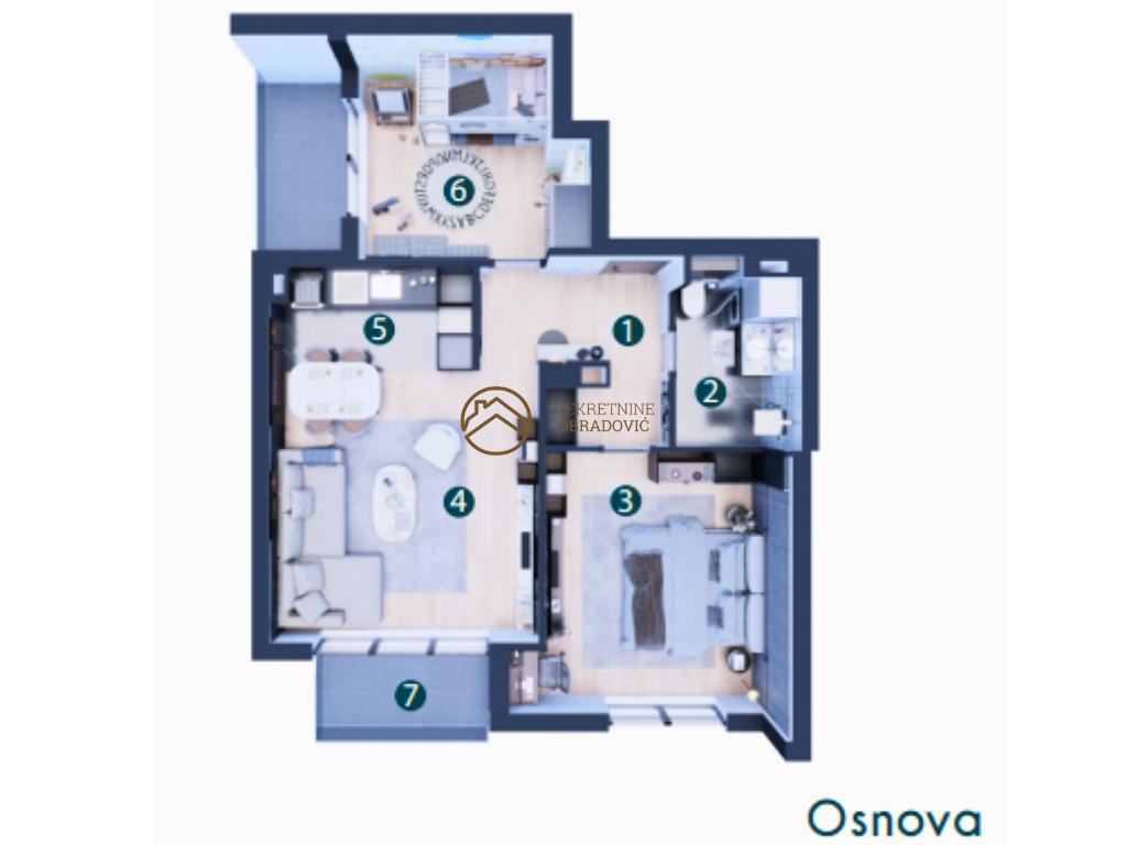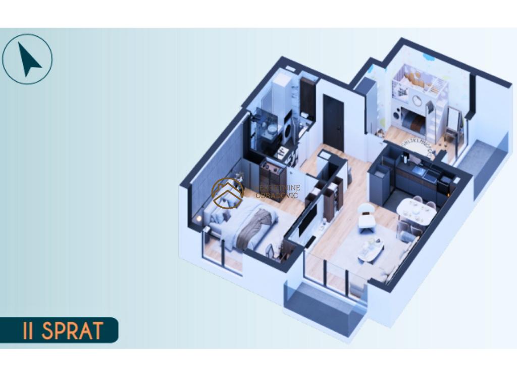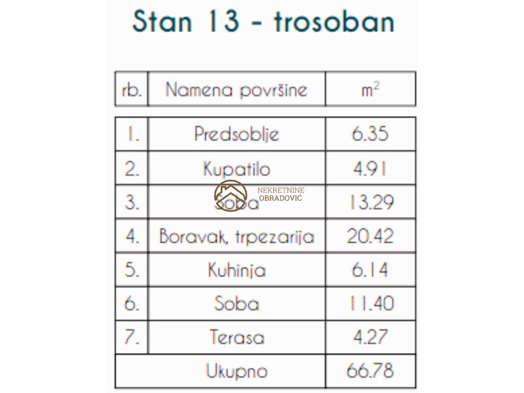 U ponudi je funkcionalan trosoban stan od 66,78m sa terasom na drugom spratu