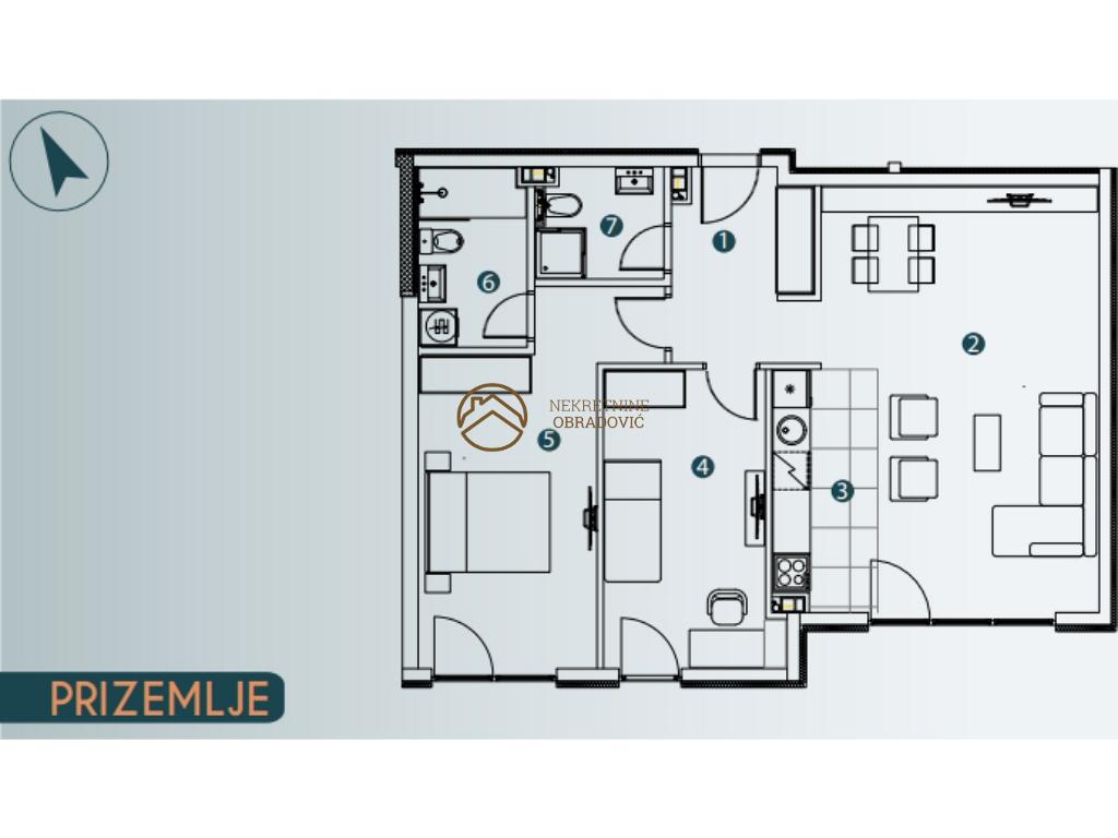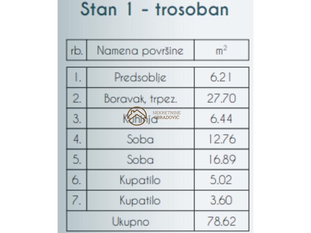 U ponudi je komforan trosoban stan, povrsine 78,62m2, na prizemlju zgrade, sa
