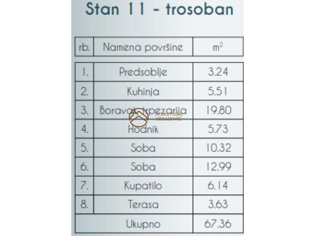 U ponudi je komforan trosoban stan, povrsine 67,36 m2, na drugom spratu zgrade, sa