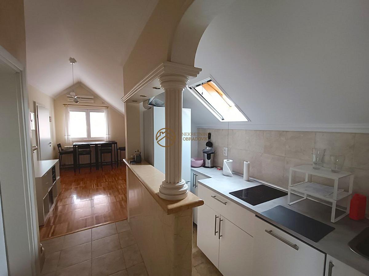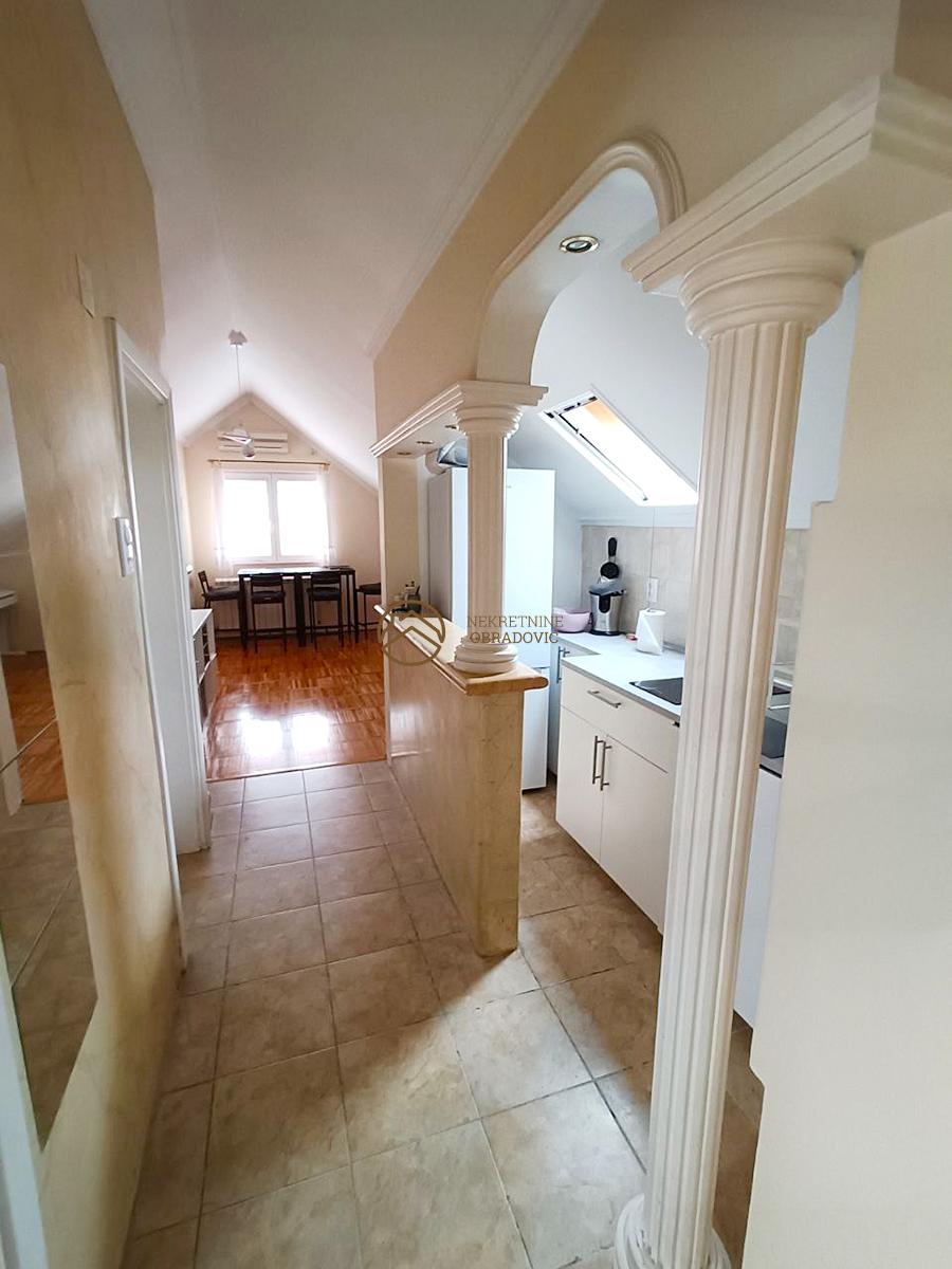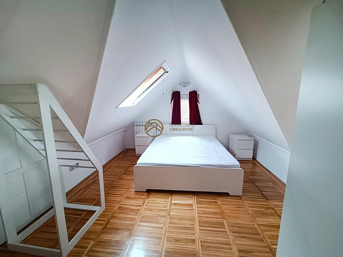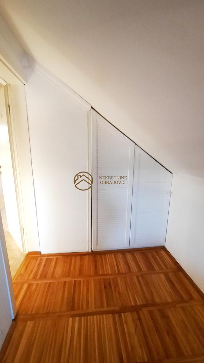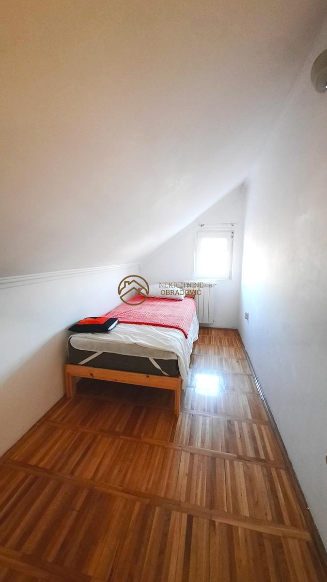 Na prodaju stan u potkrovlju zgrade, sa pazljivo osmisljenim rasporedom koji obuhvata tri spavace sobe, prostran dnevni boravak sa trpezarijom i kuhinjom. Stan je svetao, funkcionalan sa maksimalno iskoriscenim prostorom za odlaganje. Uz stan dolazi parking mesto u dvoristu zgrade, sto dodatno doprinosi prakticnosti i udobnosti. Nalazi se na mirnoj lokaciji, odlicno povezanoj sa gradskim sadrzajima i glavnim saobracajnim pravcima. Stan je uknjizen bez tereta i zabelezbi.
